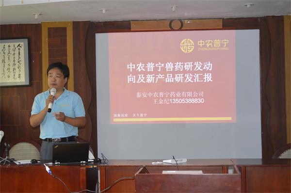 隨后公司技術研發(fā)總監(jiān)王金紀先生做了具有指導性意義報告,王總對當前國家對獸藥企業(yè)的研發(fā)生產法規(guī)、獸藥研發(fā)形勢、行業(yè)發(fā)展現(xiàn)狀、公司現(xiàn)有產品情況給予了詳細說明。