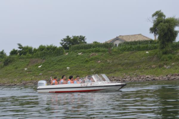 第一天上午隨后我們來到了太陽島景區(qū),大家乘坐游艇游覽了朝鮮境內(nèi),這次朝鮮之旅感慨很多,朝鮮對于我們來說是那么的神秘、那么的深不可測。帶著眾多的猜測和好奇我們進入了朝鮮的境內(nèi)看到朝鮮的軍人、別墅、河邊洗衣的鮮族人、不平等的男女關(guān)系、110伏的電線、瘦弱的山羊、如今人們還是吃不飽穿不好。