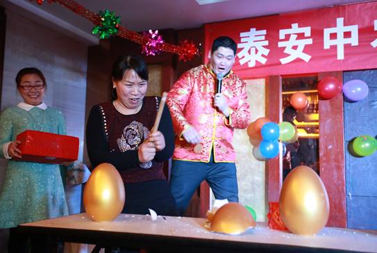 臺下一桌桌豐盛的晚餐、彼此舉杯同賀、相互祝愿。公司領(lǐng)導(dǎo)與員工親情互動、激動人心的砸金蛋活動、搶錢大賽、四大名陪吹瓶比賽、五環(huán)之歌對歌游戲。。。