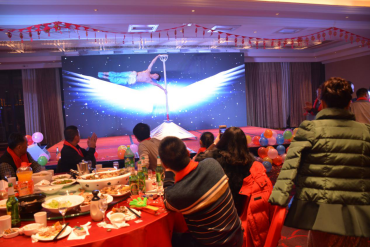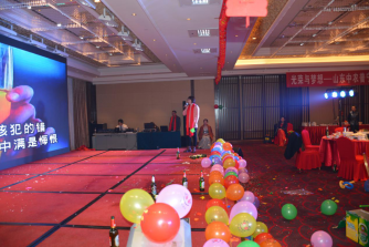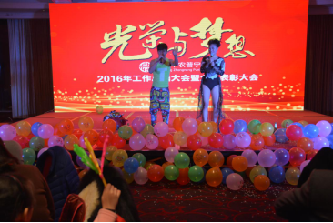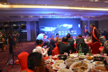 臺(tái)下一桌桌豐盛的晚餐、彼此舉杯同賀、相互祝愿。公司領(lǐng)導(dǎo)與員工親情互動(dòng)、激動(dòng)人心的砸金蛋活動(dòng)、搶錢(qián)大賽、吹瓶比賽......