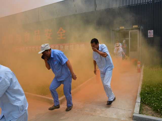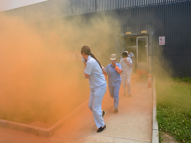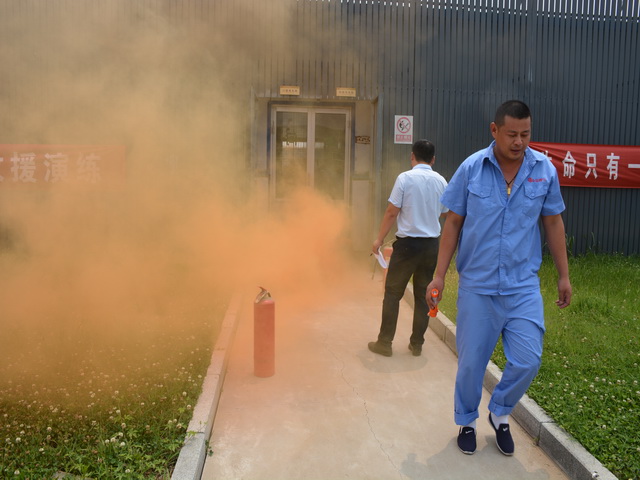 為了使演練現(xiàn)場(chǎng)更加逼真,生產(chǎn)部準(zhǔn)備了煙霧彈。11:20分,隨著紅色煙霧迅速?gòu)浡?/FONT>生產(chǎn)車間門口,生產(chǎn)部發(fā)現(xiàn)有火情,由報(bào)警組立即向總經(jīng)理康總報(bào)告,康總隨即下達(dá)命令啟動(dòng)消防應(yīng)急預(yù)案與緊急逃生指令,車間主任第一時(shí)間按響警報(bào)鈴,同時(shí)模擬撥打火警電話,各應(yīng)急小組聽到鈴聲后各司其職,應(yīng)急疏散組在車間指揮有序疏散,為員工緊急疏散指明方向。水電組迅速切斷車間電源,救護(hù)組清點(diǎn)人員全部安全撤離到集合地點(diǎn),11:23分全部人員成功撤離。