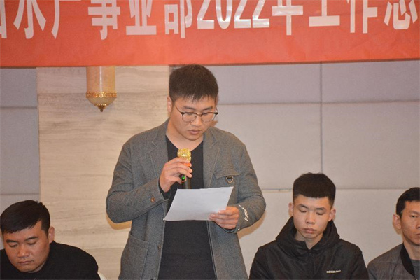 本次會(huì)議在一首振奮人心的《眾人劃槳開(kāi)大船》的合唱中拉開(kāi)序幕,首先公司營(yíng)銷(xiāo)總監(jiān)劉瑞祥對(duì)2022年水產(chǎn)事業(yè)部的銷(xiāo)售工作作了報(bào)告,劉總指出,在2022年受疫情影響的大環(huán)境下,集團(tuán)水產(chǎn)事業(yè)部仍然取得了歷史最佳的業(yè)績(jī),成績(jī)實(shí)屬來(lái)之不易,這是每個(gè)團(tuán)隊(duì)成員拼搏努力的結(jié)果!同時(shí)劉總對(duì)2023年水產(chǎn)事業(yè)部的銷(xiāo)售計(jì)劃、工作重點(diǎn)進(jìn)行了部署,也對(duì)團(tuán)隊(duì)每個(gè)成員的銷(xiāo)售目標(biāo)提出了要求。