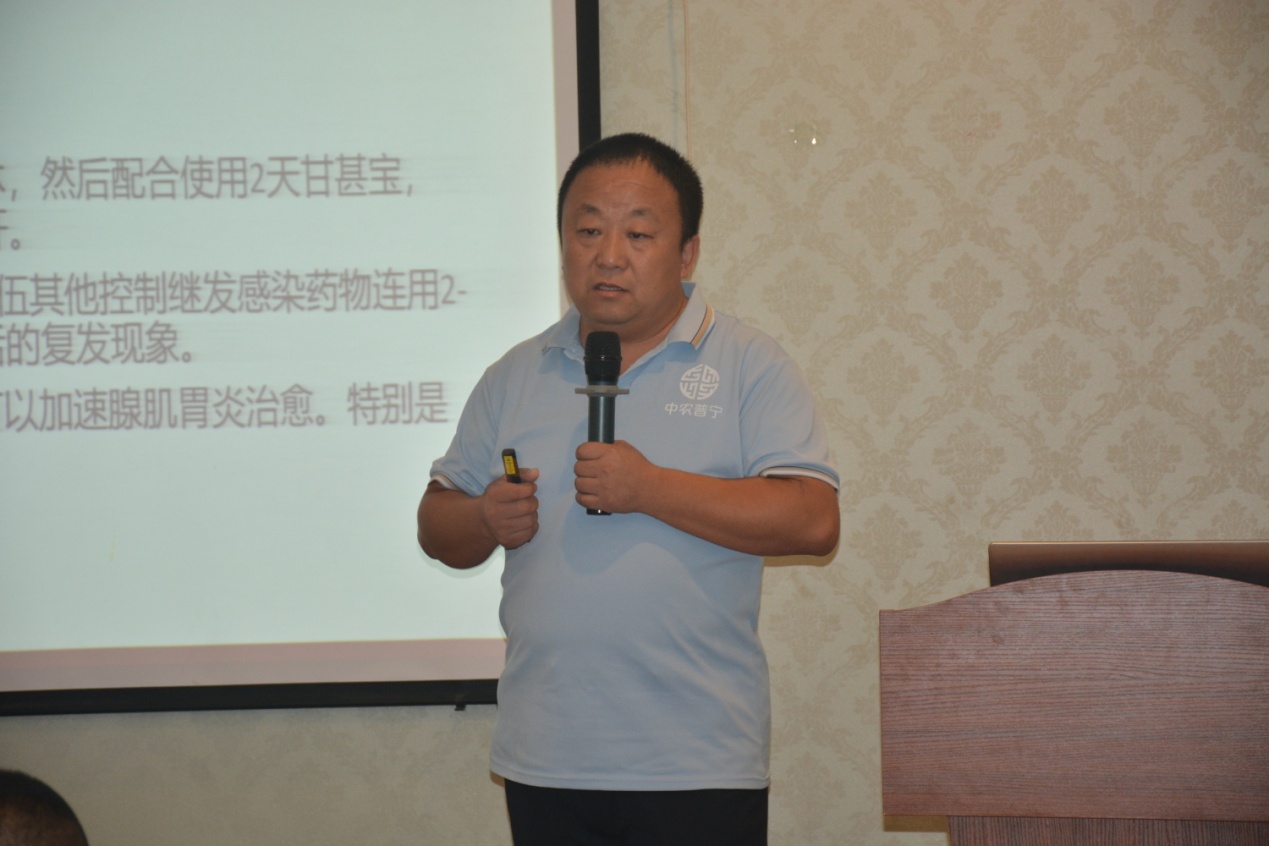 銷售團(tuán)隊(duì)匯報(bào)結(jié)束后,公司技術(shù)服務(wù)部曹全營與周恒兩位經(jīng)理給參會(huì)人員帶來了精彩的技術(shù)報(bào)告。兩位技術(shù)專家通過豐富的禽病診療經(jīng)驗(yàn),結(jié)合當(dāng)前養(yǎng)殖業(yè)疾病發(fā)病情況,不斷解鎖公司產(chǎn)品新功能,豐富用藥方案,為客戶排憂解難,使公司產(chǎn)品得到了客戶的一致好評(píng)。