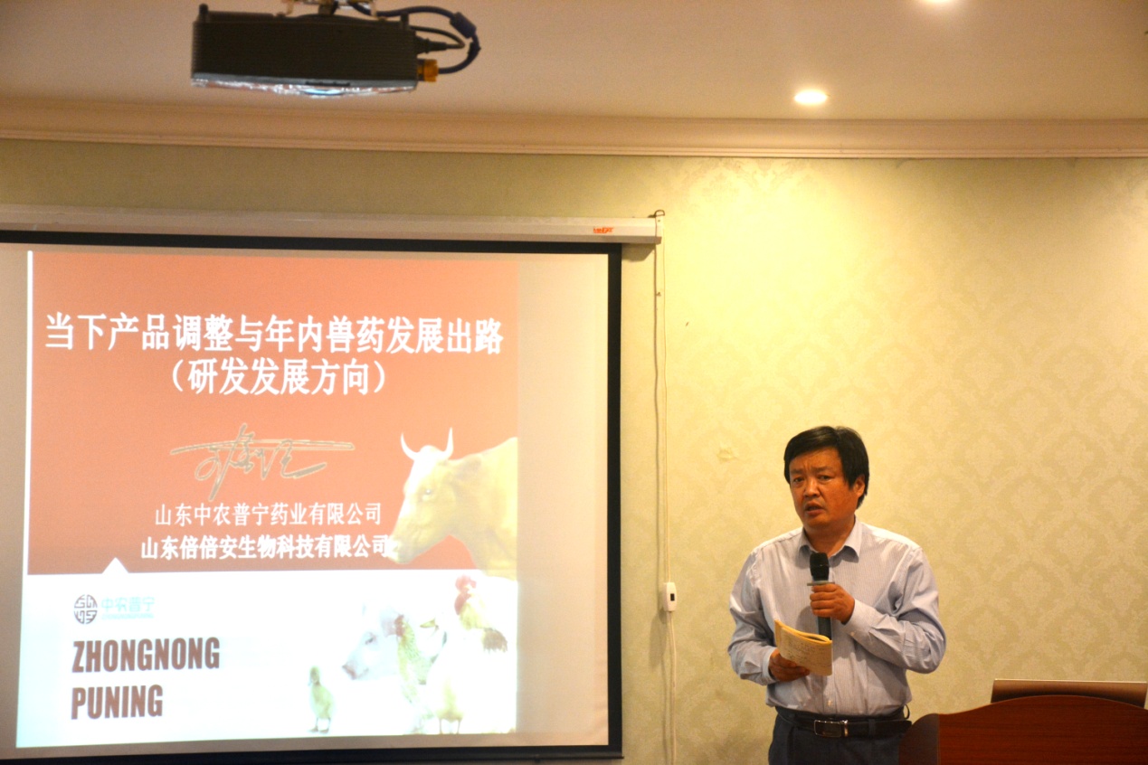 接下來,公司技術(shù)總監(jiān)王金紀(jì)帶來了《當(dāng)下產(chǎn)品調(diào)整與年內(nèi)獸藥發(fā)展出路》的技術(shù)報(bào)告。王總介紹了當(dāng)前公司產(chǎn)品的架構(gòu),分析了目前獸藥行業(yè)面臨的問題,同時(shí)基于公司未來的發(fā)展,王總給出了公司產(chǎn)品接下來的研發(fā)方向,只有緊跟市場(chǎng),不斷推陳出新,才能始終保持公司產(chǎn)品的市場(chǎng)競(jìng)爭(zhēng)力。