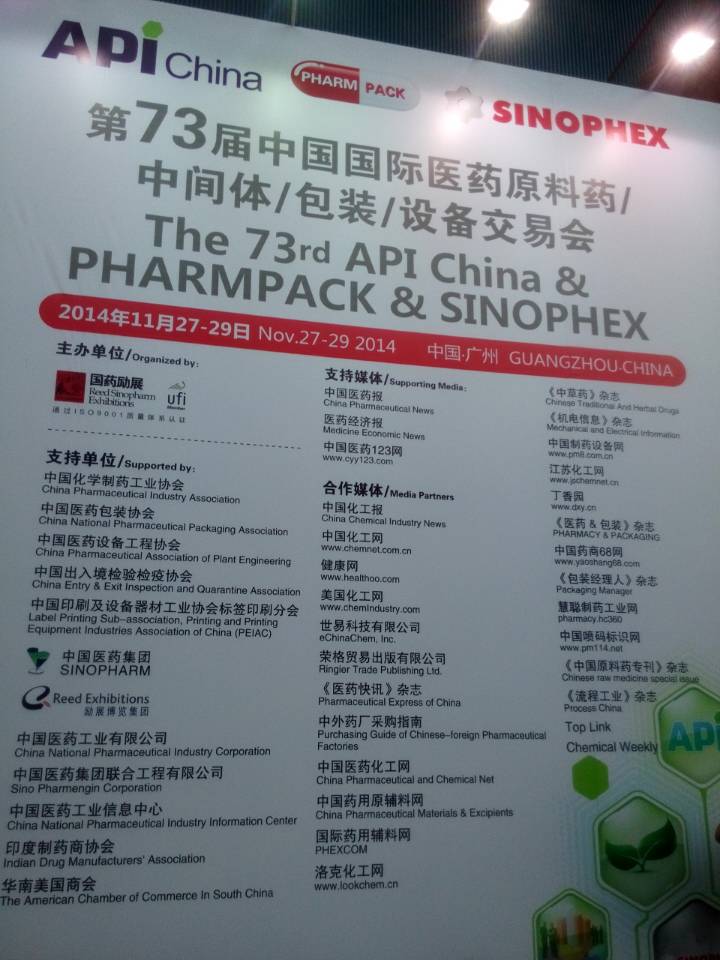 11月27-29日,第72屆全國藥品交易會將在中國進出口商品交易會展館(廣州琶洲)舉辦,大會同期召開第73屆中國國際醫(yī)藥原料藥/中間體/包裝/設備交易會和2014中國(廣州)保健節(jié)/第14屆中國國際保健博覽會。此次展出面積超過 12萬平米,將有來自海內(nèi)外3500 多家企業(yè)攜8 萬多種精品展出,展品覆蓋上下游技術(shù)/產(chǎn)品研發(fā)、醫(yī)藥制劑、原料藥、化工產(chǎn)品、醫(yī)藥包裝、制藥設備、健康保健產(chǎn)品等醫(yī)藥領(lǐng)域的全產(chǎn)業(yè),全面展示當今世界醫(yī)藥行業(yè)最新產(chǎn)品和技術(shù)以及發(fā)展趨勢。吸引了超過10 萬名海內(nèi)外醫(yī)藥行業(yè)精英齊聚廣州,公司康總、王總參加參加本次盛會。